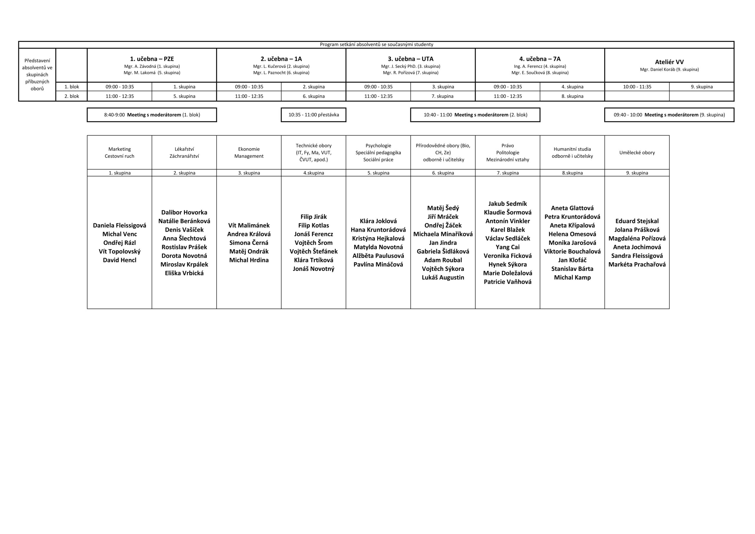 Jmenný seznam absolventů a jejich oborů a pracovních zkušeností najdete na následujícím odkazu – Medailonky_absolventi_podle_skupin.pdf