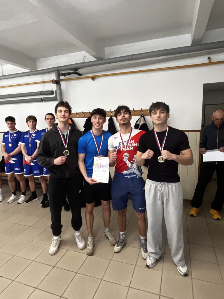 Ambice nebyly příliš velké, o to příjemnější pak byly výkony a nakonec i konečné výsledky. V benchpressu bral bronz Petr Žák ze 4.C (35 opakování), stejně tak i ve shybech (24). Skvělých devět metrů v trojskoku znamenalo stříbro a ani ve vznosech se Petr neztratil. Nadprůměrné výkony podával i zbytek týmu. – Antonín Pátek, Patrik Zvolánek (7.A) a Šimon Vožický (8.A). Díky tomu náš tým se 620 body vybojoval výborné druhé místo a vítezství mu uniklo o pouhých 5 bodů za brodskou stavebkou. Kluci tak vybojovali postup na celostátní finále.