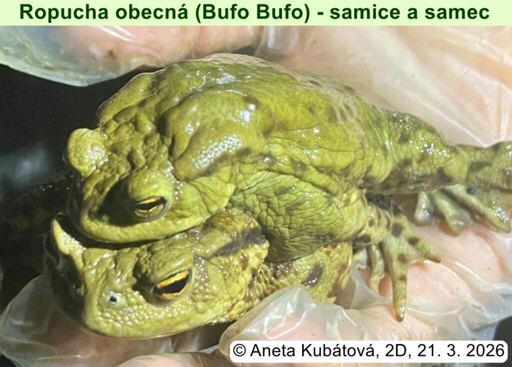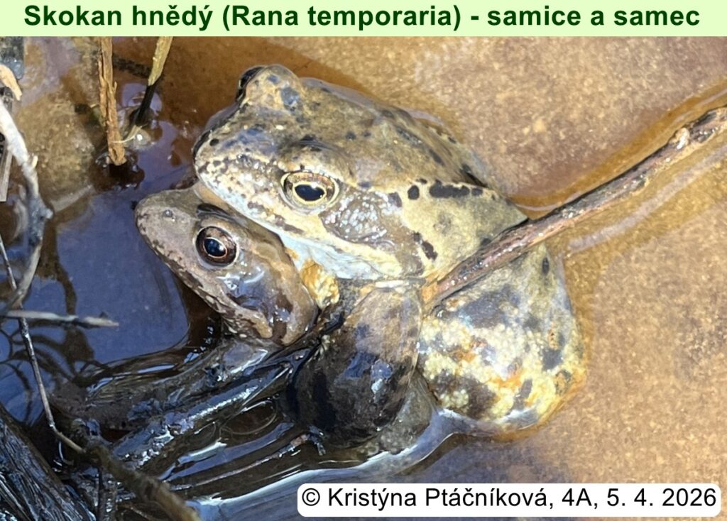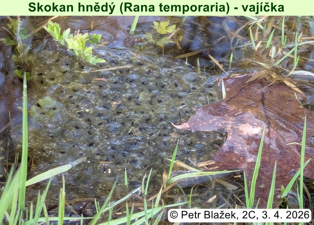 Přesně před měsícem byla vyhlášena soutěž „První jarní žába 2026“. Od té doby se na mailu 2026-zabka@ghb.cz sešlo téměř 20 zdokumentovaných nálezů obojživelníků. Většinou se jednalo o ropuchy obecné a skokany hnědé, případně jejich vajíčka. Asi nejzajímavějším nálezem byl mlok skvrnitý. Takže první tři místa (z hlediska času) už jsou obsazena a na autory čeká věcná odměna. Všichni účastníci by také měli být už oceněni dílčí jedničkou z biologie.